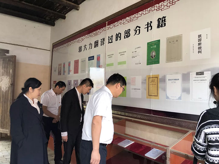在解說員的帶領(lǐng)下,大家參觀了郭大力故居內(nèi)陳列的珍貴而詳實的文物。通過解說員的生動講述,參觀一幅幅照片、一份份文獻(xiàn)資料,大家對郭大力同志的生平事跡有了更深刻的了解,深刻感受到老一輩革命家勤奮刻苦、孜孜不倦的“求學(xué)精神”,追求真理、探尋道路的“救國精神”,為國為民、殫精竭慮的“忠誠精神”,深刻體會了共產(chǎn)黨人的初心和使命,激發(fā)了大家奮發(fā)向上、積極進取的信心和決心。