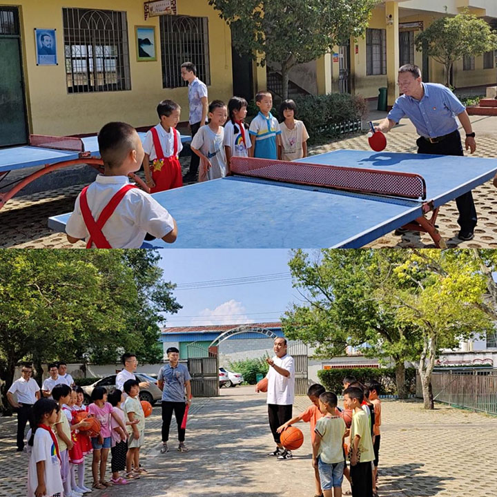 本次活動分兩個階段開展。第一階段,以愛國主義教育為切入點,分別在良田小學(xué)和東山小學(xué)開展。黃家偉帶領(lǐng)團員與全體師生開展升國旗、唱國歌活動,在激昂的歌聲中向國旗敬禮、向祖國致敬。隨后,黃家偉代表集團黨委向兩所學(xué)校捐贈物資,用于改善當(dāng)?shù)剞r(nóng)村教學(xué)條件。在學(xué)生們課間休息時間,團員們還陪伴學(xué)生們上了一堂豐富有趣的體育課。團員們還與學(xué)校老師進行交流座談,表達了關(guān)心與寄語。