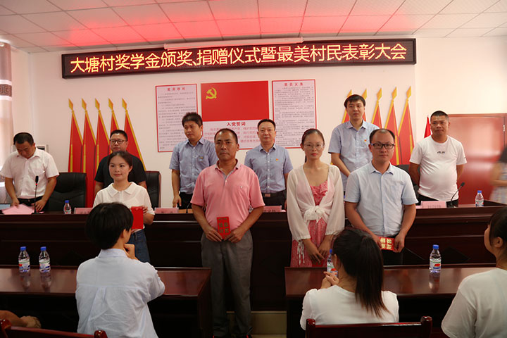 大會為大塘村7名大塘村小學優(yōu)秀教師、13名大塘村小學品學兼優(yōu)的學生、13考入高等學府的學子頒發(fā)獎學金,共計發(fā)放獎學金3.4萬元,這是獲得大塘村獎學金批教師和學生。這不僅激勵大塘村的教師們精益求精繼續(xù)抓好鄉(xiāng)村教育,鼓勵大塘村的孩子們勤奮好學、頑強拼搏,還倡導更多愛心人士積極投身支持教育扶貧,堅決在大塘村脫貧攻堅陣地上阻斷貧困代際傳遞。