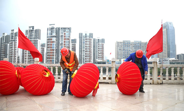 春節(jié)臨近,國(guó)內(nèi)疫情仍面臨著“外防輸入、內(nèi)防反彈”的壓力,為更好地給市民朋友營(yíng)造歡樂喜慶的春節(jié)氛圍,贛州城投集團(tuán)下屬子公司生態(tài)投資公司正在中心城區(qū)的六個(gè)主要節(jié)點(diǎn)(贛州火車站、高鐵西站、黃金機(jī)場(chǎng)等)、十條主要道路(長(zhǎng)征大道、文清路、厚德路、健康路、興國(guó)路等)、六條主要橋梁(飛龍大橋、西河大橋、楊梅渡大橋、章江大橋等)、八個(gè)主要公園(黃金廣場(chǎng)、贛州公園、中央生態(tài)公園、八境公園等)緊鑼密鼓地進(jìn)行春節(jié)氛圍營(yíng)造工作,打造“留贛過年”的溫暖年味。