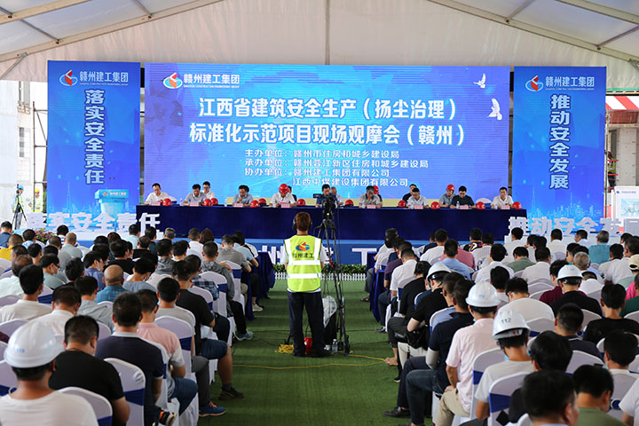日前,2021年江西省建筑施工安全生產(chǎn)(揚塵治理)標(biāo)準(zhǔn)化示范項目現(xiàn)場觀摩會(贛州)在贛州城投集團星洲萃苑(一期)項目工地成功舉辦,會議主題為“落實安全責(zé)任,推動安全發(fā)展”。市住建局、市應(yīng)急局、蓉江新區(qū)管委會、贛州城投集團有關(guān)領(lǐng)導(dǎo),以及來自各縣(市、區(qū))住建主管部門分管領(lǐng)導(dǎo)和安全監(jiān)督機構(gòu)負責(zé)人,市本級在建項目企業(yè)代表,新聞媒體記者等共計200余人走進項目施工現(xiàn)場,重點對星洲萃苑(一期)項目建筑施工安全生產(chǎn)標(biāo)準(zhǔn)化、綠色文明施工、智慧工地管理等方面進行了全方位的觀摩學(xué)習(xí)。