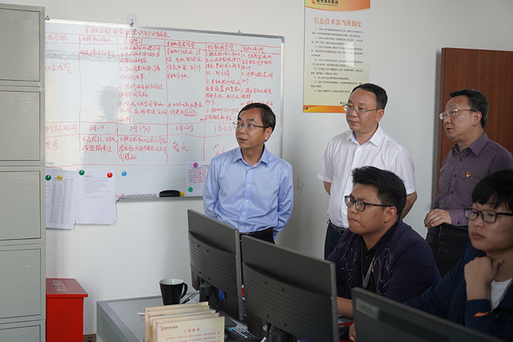 吳詩東一行先后到集團黨性教育體驗室、職工之家、匯金砂業(yè)智慧河砂運營調(diào)度中心機房、市綜合文化藝術中心、蟠龍大橋項目等調(diào)研指導,詳細了解集團黨建工作、經(jīng)營業(yè)務及項目建設開展等情況。