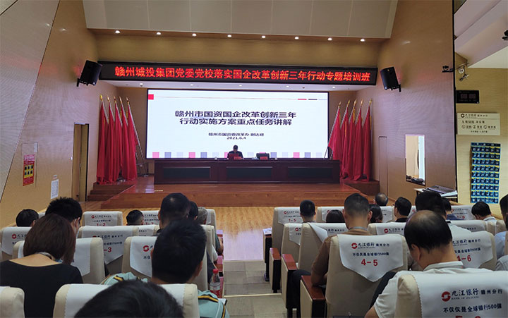 6月23日下午,贛州城投集團(tuán)黨委黨校舉辦落實(shí)國企改革創(chuàng)新三年行動(dòng)專題培訓(xùn)班,集團(tuán)黨委委員、總工程師王遠(yuǎn)平,黨委委員、紀(jì)委書記曾富有出席,市國資委宣教科科長謝達(dá)迎應(yīng)邀作專題輔導(dǎo),集團(tuán)全體中層管理人員,相關(guān)部門、子公司人員共計(jì)70余人參加培訓(xùn)。