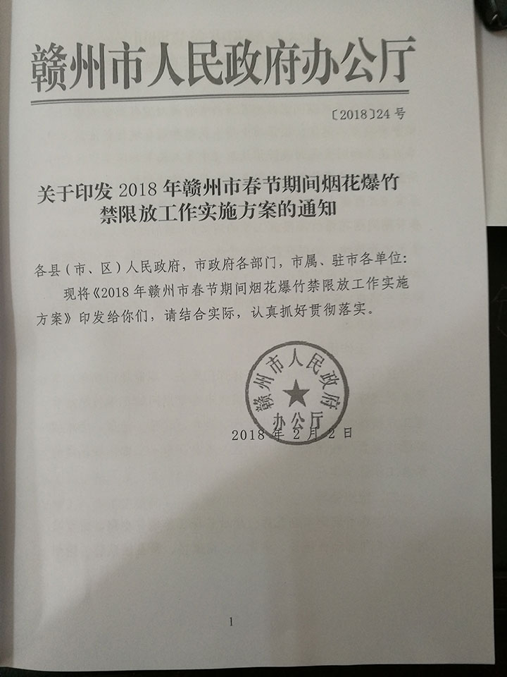 關(guān)于2018年春節(jié)期間煙花爆竹禁限放工作的通知