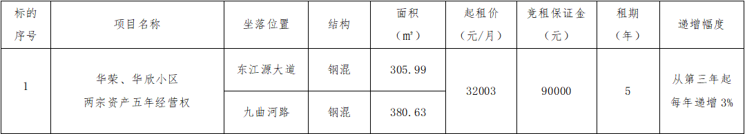 贛州振興實(shí)業(yè)有限責(zé)任公司委托江西江南拍賣有限公司,定于2021年12月21日15:00開始在江西省公共資源網(wǎng)絡(luò)交易服務(wù)平臺(tái)產(chǎn)權(quán)交易子系統(tǒng)通過網(wǎng)上競價(jià)公開招租華榮、華欣小區(qū)兩宗資產(chǎn)5年經(jīng)營權(quán),歡迎符合條件的單位和個(gè)人前來競租,現(xiàn)將有關(guān)事項(xiàng)公告如下: