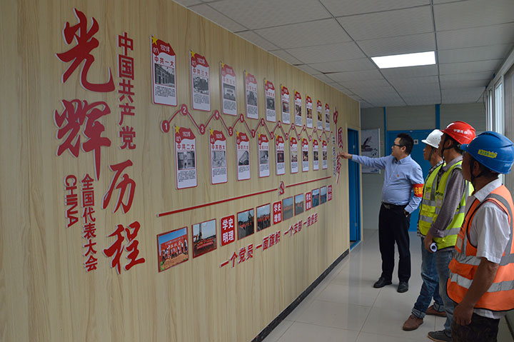 在贛州市蟠龍大橋項(xiàng)目部的黨員活動(dòng)室走廊,贛州城投集團(tuán)工程管理公司黨總支設(shè)置了一面黨史學(xué)習(xí)墻,記錄黨從1921年中共一大到十九大的偉大光輝歷程。在該項(xiàng)目部,贛州城投集團(tuán)黨員帶著項(xiàng)目其他人員,定期到黨史學(xué)習(xí)墻前開(kāi)展“黨史接龍”學(xué)習(xí),重溫歷史,傳承優(yōu)良的革命傳統(tǒng)。