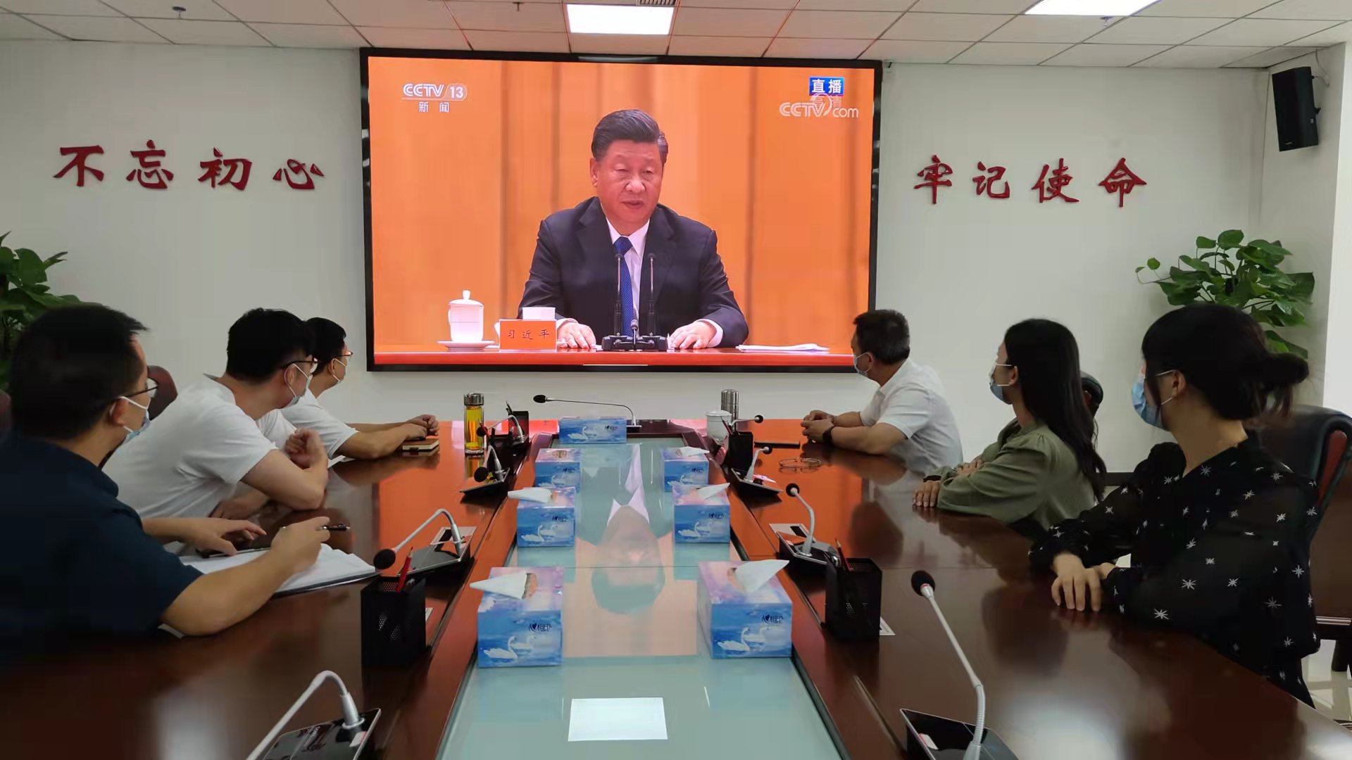跟著直播大會現(xiàn)場的節(jié)奏,大家起立、肅穆,共同奏唱了國歌,認(rèn)真聆聽了習(xí)近平總書記在大會上發(fā)表的重要講話精神。