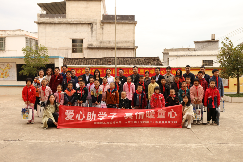 當(dāng)天,贛州建工集團(tuán)黨支部為學(xué)生們分享了紅色故事《為中華崛起而讀書》,鼓勵(lì)貧困學(xué)生樹立遠(yuǎn)大理想,厚植愛國情懷,努力學(xué)習(xí),增強(qiáng)本領(lǐng),勇挑時(shí)代重?fù)?dān)。人才小鎮(zhèn)(星洲萃苑)臨時(shí)聯(lián)合黨支部黨員則用通俗易懂語言、生動(dòng)活潑的方式,為學(xué)生們上了一堂生動(dòng)的消防知識(shí)課。隨后,黨員一行為52名貧困學(xué)生贈(zèng)送了書包、文具用品,勉勵(lì)他們要聽黨話、跟黨走,樹立崇高理想,勤奮學(xué)習(xí),快樂成長,將來做一個(gè)對(duì)社會(huì)有用的人。
