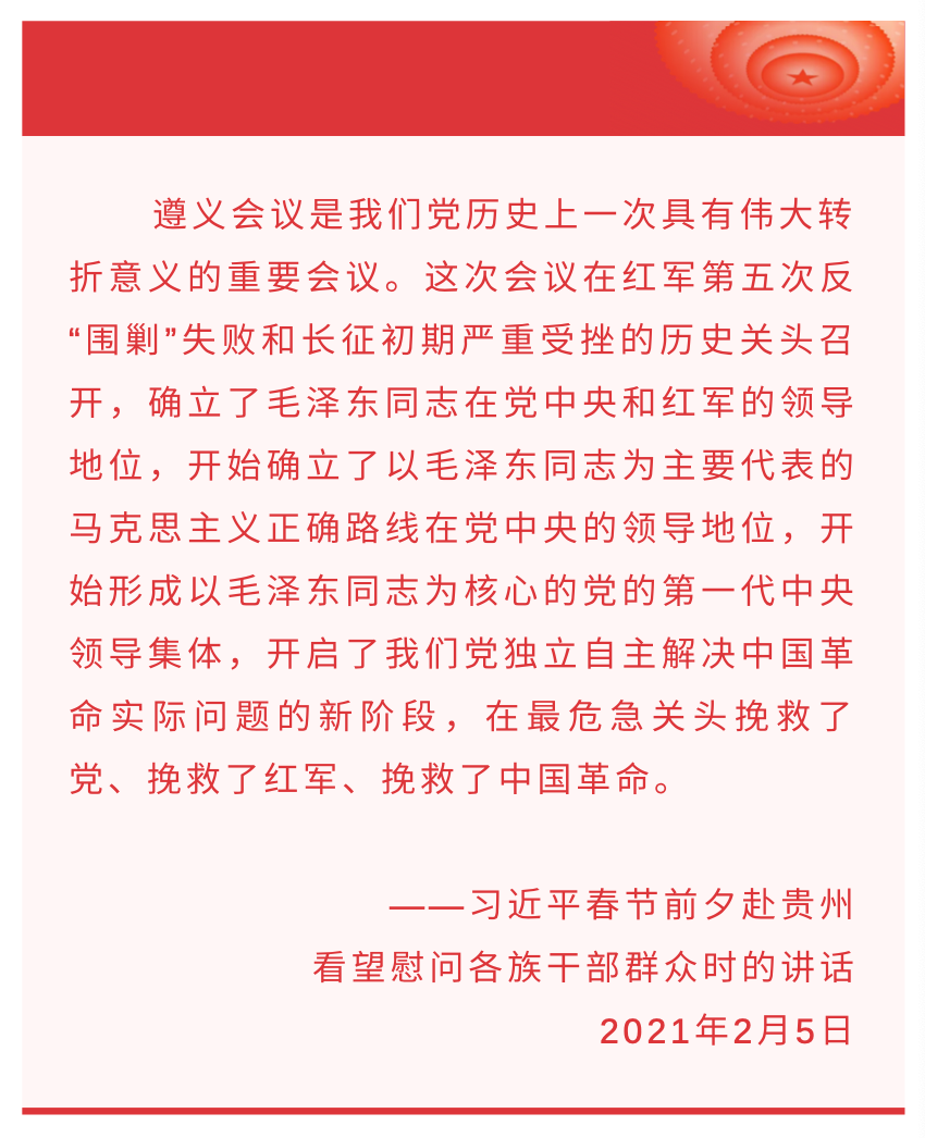 遵義會議是黨的歷史上一個生死攸關(guān)的轉(zhuǎn)折點(diǎn)。遵義會議后,中央紅軍在毛澤東等指揮下,根據(jù)實際情況的變化,靈活變換作戰(zhàn)方向,迂回穿插于敵人重兵之間,于5月上旬渡過金沙江。至此,中央紅軍擺脫幾十萬國民黨軍隊的圍追堵截,粉碎了蔣介石圍殲紅軍于川黔滇邊境的計劃,取得了戰(zhàn)略轉(zhuǎn)移中具有決定意義的勝利。