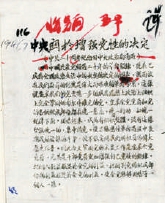 1941年7月1日,中共中央政治局通過的《關(guān)于增強(qiáng)黨性的決定》(部分)。(中央檔案館藏)